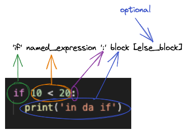 Let's take a look at the second one: 'if' named_expression ':' block [else_block].