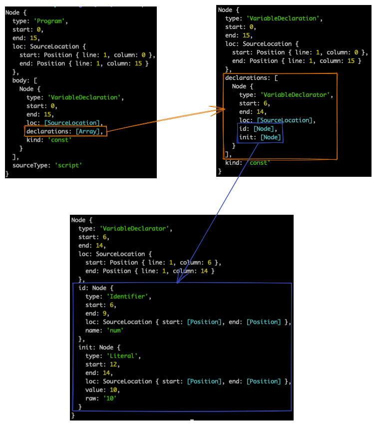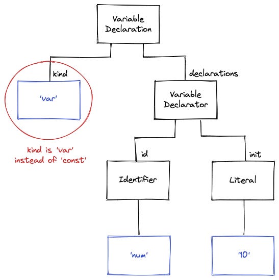 The answer is yes; the AST has this information. So, let’s change our code to var num = 10; and take a look at the AST.