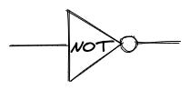 Next, we learn the shape of the NOT: a triangle and a small circle.