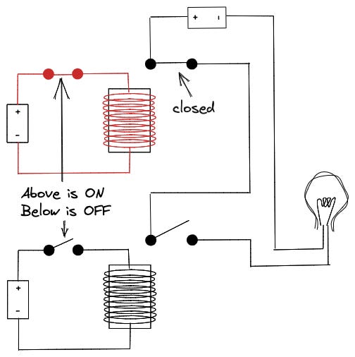 We built an adding machine –a simple one– with the technology available before the 20th century. How cool is that? Relays were widely used in the telegraph infrastructure of that century, and George Boole introduced logical operations in 1847.