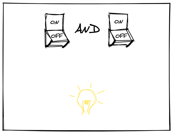 The lightbulb is on only when both switches are on. If any of the switches (or both) are off, the lightbulb should be also off: