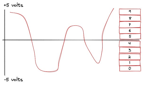 Identifying a voltage is easy because the buckets are big. It doesn’t matter that transistors are not good at controlling the amount. Imagine instead that we wanted to identify a decimal number: